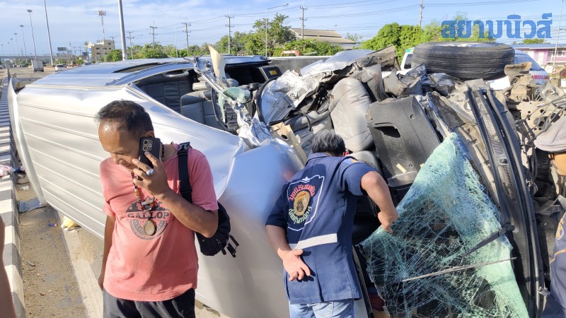 ด้านคนขับรถตู้ เล่าว่าก่อนเกิดเหตุกำลังขับรถตู้พาคนป่วย มาจากอำเภอหันคา จังหวัดชัยนาท จะพาคนไปส่งโรงพยาบาลธรรมศาสตร์รังสิต จ.ปทุมธานี ออกมาจากชัยนาทตั้งแต่เวลา  05.30 น. ด้วยกันทั้งหมดประมาณ 10 คน มีนายบุญสืบ สุวรรณประทีป อายุ 55 ปี นั่งอยู่เบาะหน้าด้านซ้ายคู่มากับตน  โดยตนขับวิ่งเลนกลาง วิ่งมาด้วยความเร็วประมาณ 80 มาถึงที่เกิดเหตุ มีรถบรรทุกขับเลี้ยวยูเทิร์น ตัดหน้ากระชั้นชิด ทำให้ตนเองเบรกไม่ทัน รถตู้จึงพุ่งชนรถบรรทุกอย่างจัง ทำให้คนที่มาในรถตู้ได้รับบาดเจ็บหลายราย ส่วนตัวเองได้รับบาดเจ็บเล็กน้อย  โดนน้ำของหม้อน้ำรถลวก ตอนที่เกิดเหตุมันไวมาก ส่วนที่ได้รับบาดเจ็บเล็กน้อย น่าจะมาจากบารมีหลวงปู่สุข วัดหัวสะพาน ที่ตนคล้องอยู่ช่วยชีวิตทำให้ได้รับบาดเจ็บเพียงเล็กน้อย  ส่วนนายบุญสืบ ที่นั่งเบาะหน้าคู่กับตนขาซ้ายขาด ทนพิษบาดแผลไม่ไหว เสียชีวิตที่โรงพยาบาล