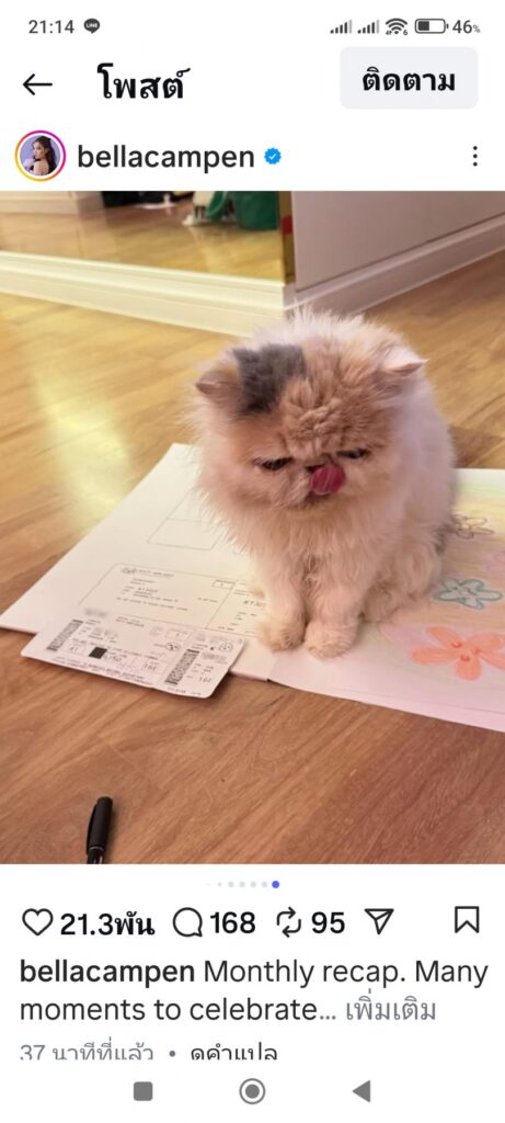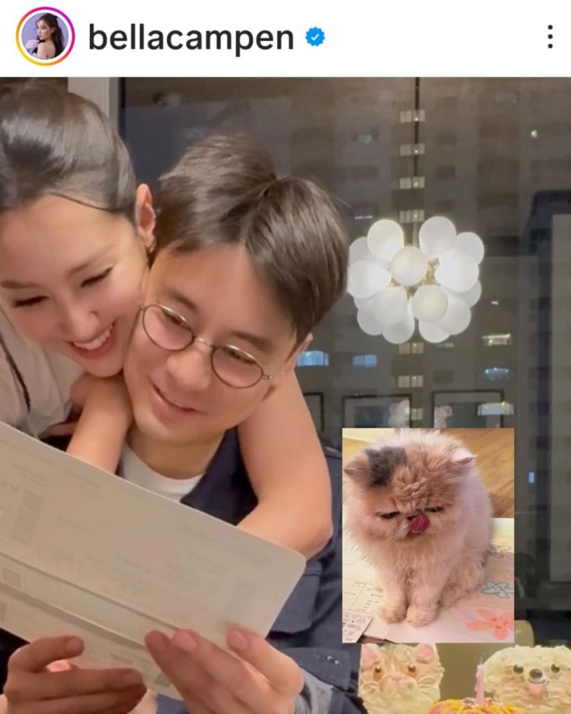 ไม่เพียงเท่านั้น เบลล่ายังโพสต์ภาพคู่สุดอบอุ่น ที่ทั้งคู่ยืนเคียงข้างกันด้วยรอยยิ้มและสายตาเต็มไปด้วยความรัก พร้อมข้อความแซวเล็กๆ อย่างอารมณ์ดี จนแฟนๆ เข้ามาคอมเมนต์แสดงความยินดีและเอ็นดูในความน่ารักของทั้งสองคนอย่างล้นหลาม