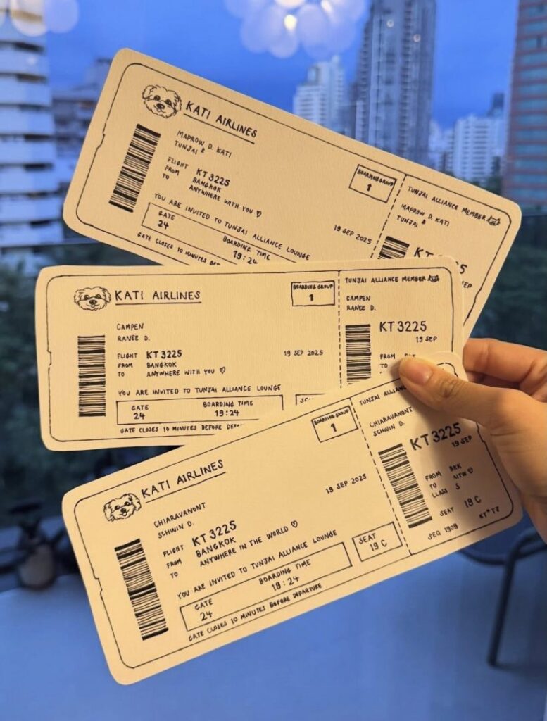 ภายในภาพตั๋วยังมีรายละเอียดน่ารัก ระบุชื่อเจ้าของตั๋วเป็น วิล เบลล่า และยังใส่ชื่อสัตว์เลี้ยงแสนรักของทั้งคู่ไว้ด้วย เพิ่มความน่าประทับใจให้กับของขวัญชิ้นนี้มากยิ่งขึ้น