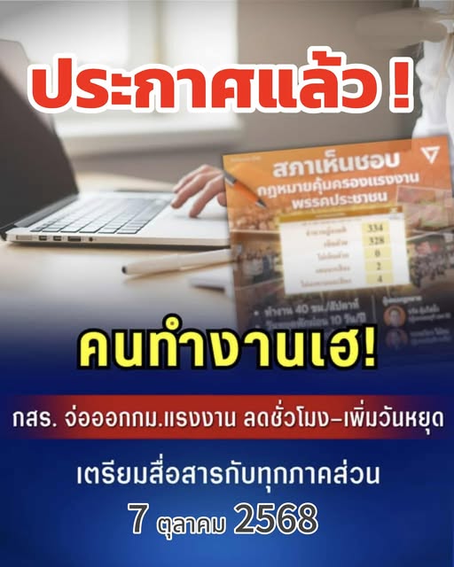 เมื่อวันที่ 3 ตุลาคม 2568 ที่ผ่านมา นางสาวสุนัน เพชรชู ผู้ตรวจราชการกรม สังกัดกรมสวัสดิการและคุ้มครองแรงงาน กระทรวงแรงงาน เปิดเผยถึงความคืบหน้าการพิจารณาร่างพระราชบัญญัติคุ้มครองแรงงาน (ฉบับที่ ..) พ.ศ. …