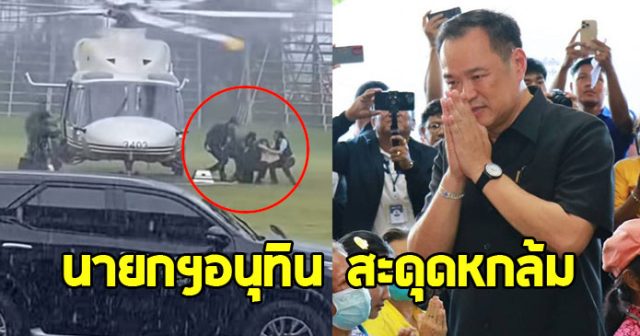 ผู้สื่อข่าวรายงานว่า ขณะที่นายอนุทินลงจากเฮลิคอปเตอร์ ในสภาพอากาศฝนตกได้ก้าวพลาด หกล้ม แต่ก็มีเจ้าหน้าที่ช่วยพยุงให้ทรงตัวขึ้นได้และปฏิบัติหน้าที่ต่อได้โดยไม่ได้รับบาดเจ็บอะไร โดยนายอนุทินบอกคนใกล้ชิดว่าสะดุดบันไดตอนลง