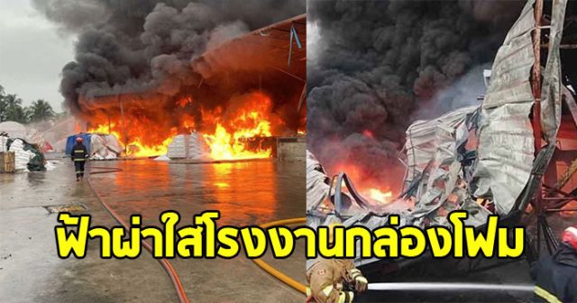 Home ข่าว ข่าวสังคม ฟ้าผ่าเปรี้ยง ใส่โรงงานกล่องโฟม ไฟลุกไหม้วอด อาคารถล่มซ้ำ