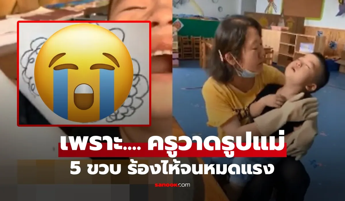 อัลบั้มภาพ 6 ภาพ ของ เด็กชาย 5 ขวบ ร้องไห้โฮโวยลั่น ครูวาดรูปแม่ “เกินจริง” มองแล้วปวดใจ ตอบโต้รุนแรงทันที!