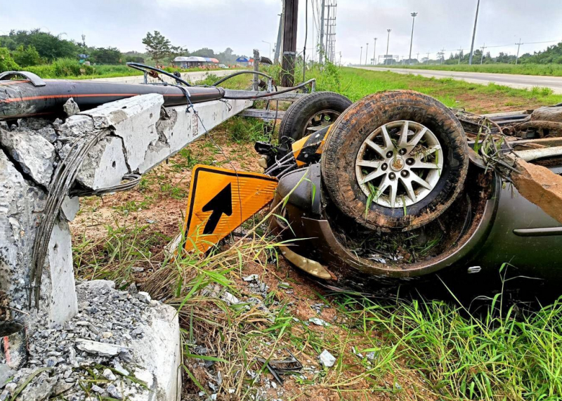 โดยที่เกิดเหตุ ด้านขาเข้า อ.เมือง จ.นครราชสีมา พบรถยนต์ยี่ห้อมิตซูบิชิ สีน้ำตาล ทะเบียนชลบุรี พุ่งชนเสาไฟฟ้าร่องน้ำกลางถนน สภาพพลิกคว่ำล้อชี้ฟ้าพังยับเยิน ส่วนผู้ขับขี่คือ ร.ท.ธราธร อายุ 27 ปี ได้รับบาดเจ็บเป็นแผลฟกช้ำเล็กน้อย เจ้าหน้าที่นำตัวส่งโรงพยาบาลสีคิ้วเพื่อรักษาและสังเกตอาการต่อไป