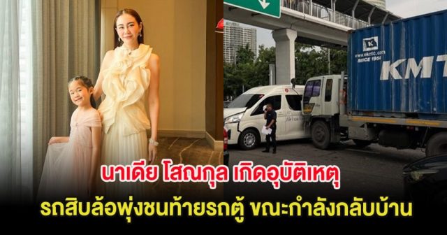 ทำเอาแฟนๆเเละคนในวงการต่างเป็นห่วงกันอย่างมากเมื่อล่าสุดนักแสดงเเละพิธีกรสาว นาเดีย โสณกุล เกิดอุบัติเหตุ รถสิบล้อพุ่งชนท้ายรถตู้ ที่เจ้าตัวนั่งกลับจากบ้านพร้อมลูกสาว โดย นาเดีย เล่าเหตุการณ์ว่า ฟาดเคราะห์เบอร์แรง นั่งรถกลับบ้านอยู่ดีดี โมนาลุกออกจากคาร์ซีทเดินมาหาแม่ซึ่งนั่งอยู่เบาะหน้าด้านหลังคนขับ