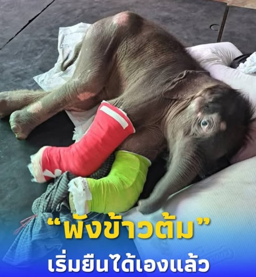 เมื่อวันที่ 16 ตุลาคม 2568 ทีมสัตวแพทย์ผู้ดูแล ลูกช้างป่า “พังข้าวต้ม” รายงานความคืบหน้าอาการล่าสุดว่าอยู่ในทิศทางที่ดีขึ้นอย่างต่อเนื่อง โดยเฉพาะการพยายาม พยุงตัวลุกขึ้นยืนเอง ถือเป็นสัญญาณสำคัญของการฟื้นตัว