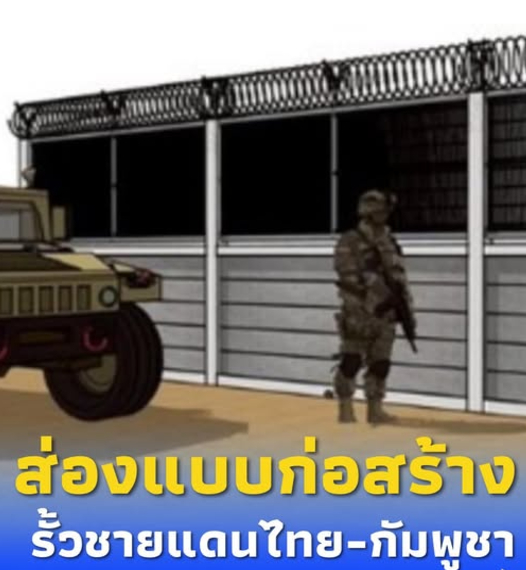 โดยทาง Wassana Nanuam เผยว่า เปิด แบบ รั้วชายแดนไทย-กัมพูชา รั้วคอนกรีตสำเร็จรูป ครึ่งตระแกรงเหล็ก ซุบ อลูซิงค์ลวดหนามหีบเพลงโดยหน่วยทหารพัฒนาพร้อมถนนตรวจการณ์