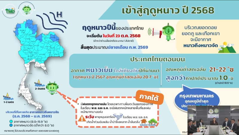 เมื่อวันที่ 21 ตุลาคม 2568 กรมอุตุนิยมวิทยา ได้จัดงานแถลงข่าว ประเทศไทยเข้าสู่ฤดูหนาวอย่างเป็นทางการ 23 ตุลาคม 2568