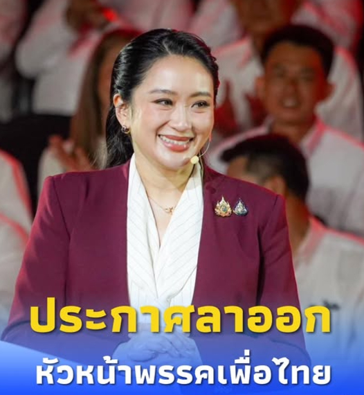 ล่าสุดทาง เนชั่นสุดสัปดาห์ มีรายงานว่า ในวันที่ 22 ต.ค. 68 น.ส.แพทองธาร ชินวัตร อดีตนายกฯ ฐานะหัวหน้าพรรคเพื่อไทย จะมีการเรียกประชุม สส.ที่พรรคเพื่อไทยในเวลา 08.30 น.เพื่อแจ้งให้ สส.ทราบว่าจะขอลาออกจากตำแหน่งหัวหน้าพรรค