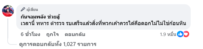 ก่อนจะระบุต่อในคอมเมนต์ ใต้โพสต์ดังกล่าวว่า เวลานี้ ทหาร ตำรวจ รบเสร็จแล้ว สิ่งที่พวกเขาควรได้ คือ ดอกไม้ ไม่ใช่ก้อนหิน