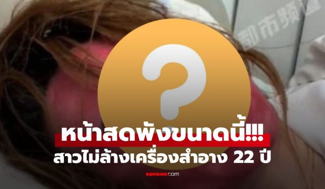 แดงเหมือนกวนอู! เผยหน้าสดสยองทั้งโซเชียลฯ สาวไม่ล้างเครื่องสำอาง 22 ปี