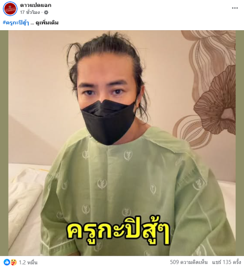 ครูกะปิสู้ๆ เดี๋ยวก็หายป่วยแล้วรีบกลับมาห้องเรียนโหนกระแส นักเรียนบ่นคิดถึง ทั้งนี้แฟนๆ ต่างเข้ามาให้กำลังใจกันอย่างล้นหลาม