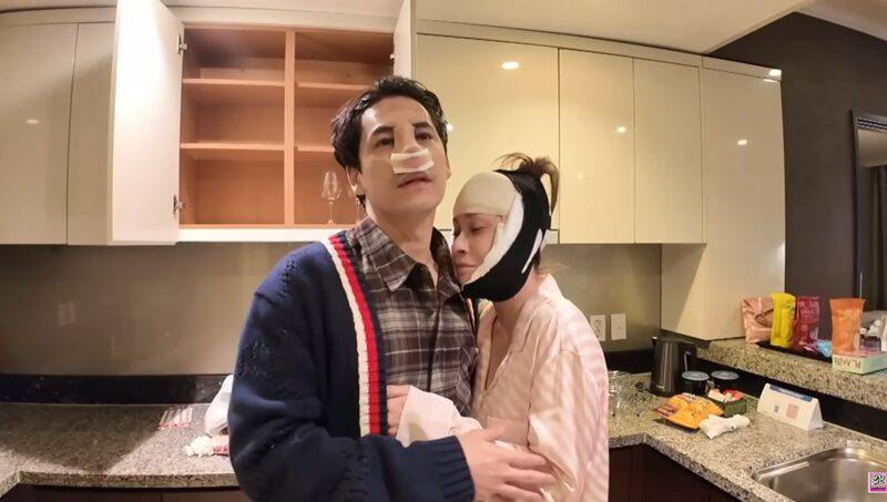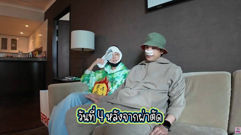 โดย เอมี่ ภรรยาศัลยกรรมก่อน มีอาการข้างเคียงหลังกลับไปพักที่โรงแรมก็อ้วกทั้งคืนก็ยังเจ็บยังระบม ขณะที่ ซี เข้าผ่าตัดแก้จมูกวันต่อมาเจ็บระบมเช่นกัน