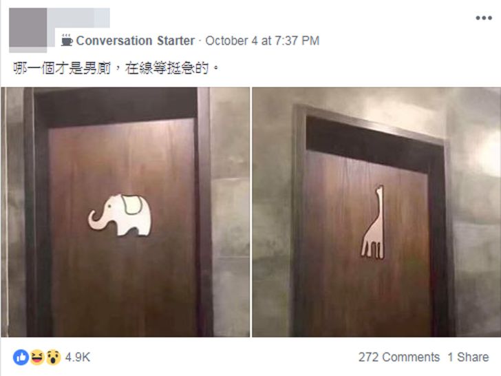 มีเพียงรูปช้างและยีราฟติดอยู่ที่ประตูห้องน้ำ จะแยกห้องน้ำชายและห้องน้ำหญิงได้อย่างไร?