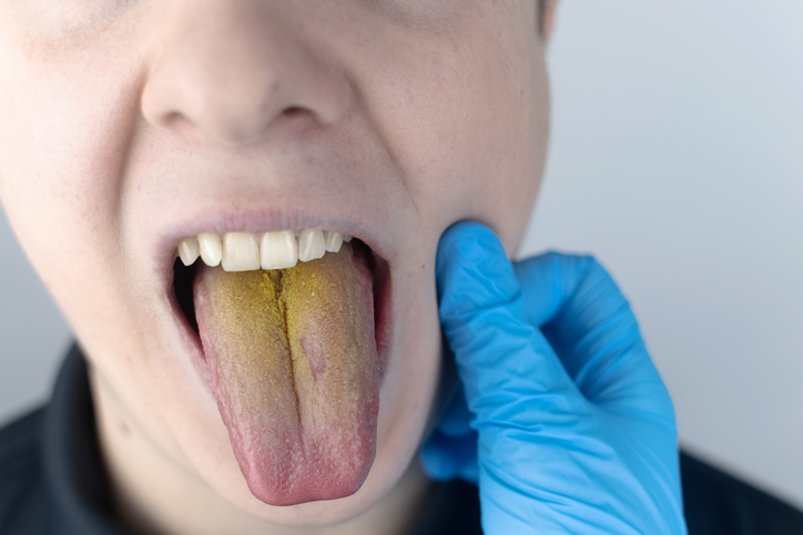 3. ลิ้นมีสีเหลืองหรือมีฝ้าสีเหลือง