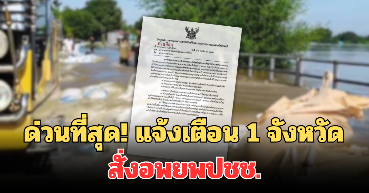 วันที่ 12 พ.ย. 2568 ที่ผ่านมา นายวราดิศร อ่อนนุช รองผู้ว่าราชการจังหวัดสิงห์บุรี ปฏิบัติราชการแทนผู้ว่าราชการจังหวัดสิงห์บุรี ผู้อำนวยการจังหวัด ทำหนังสือแจ้งนายอำเภอทุกอำเภอ ระบุว่า ตามที่กรมชลประทาน แจ้งปรับเพิ่มการระบายน้ำท้ายเขื่อนเจ้าพระยา ตั้งแต่วันที่ 10 พ.ย.68 เวลา 16.00 น. ทยอยจากอัตรา 2,800 ลบ.ม./วินาที เป็นอัตรา 2,900 ลบ.ม./วินาที เวลา 02.00 น. (ชั่วโมงละ 10 ลบ.ม./วิ โดยประมาณ) และคงอัตราดังกล่าวต่อเนื่องนั้น
