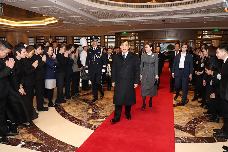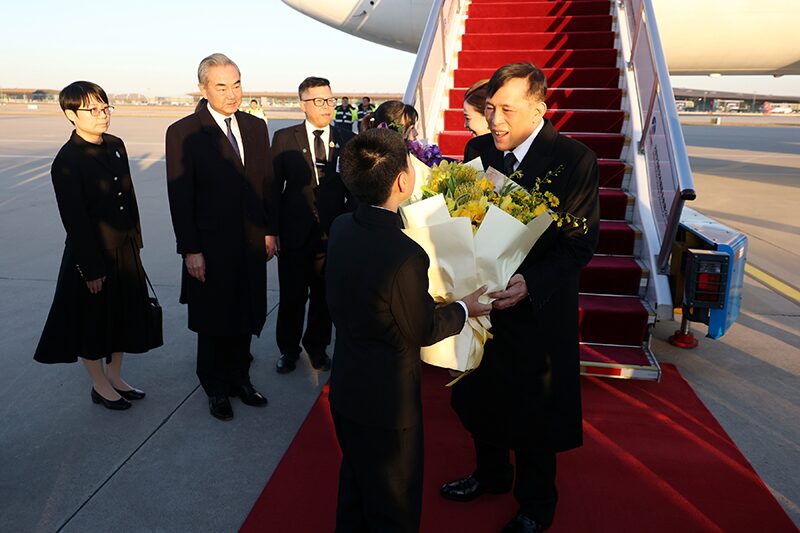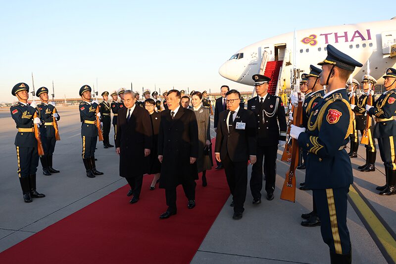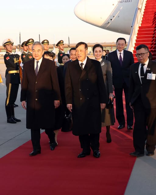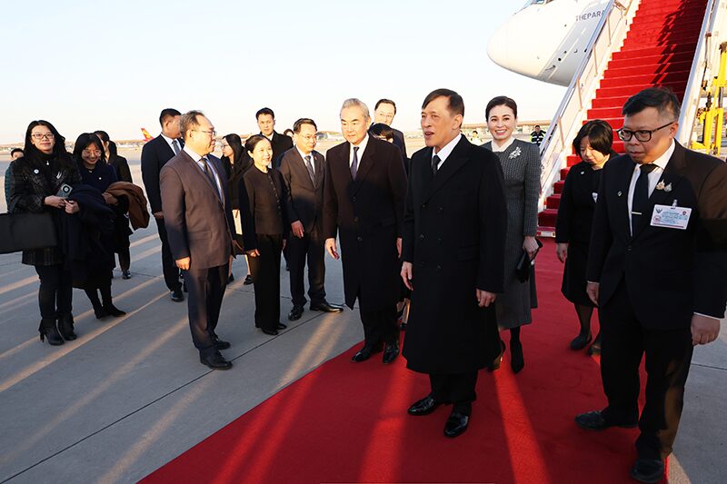 โดยมีนายหวัง อี้ (Mr. Wang Yi) สมาชิกกรมการเมือง ผู้อำนวยการสำนักงานคณะกรรมการกลางด้านกิจการต่างประเทศของพรรคคอมมิวนิสต์จีน และรัฐมนตรีว่าการกระทรวงการต่างประเทศ สาธารณรัฐประชาชนจีน พร้อมด้วยข้าราชการระดับสูง สาธารณรัฐประชาชนจีน เฝ้าทูลละอองธุลีพระบาทรับเสด็จ
