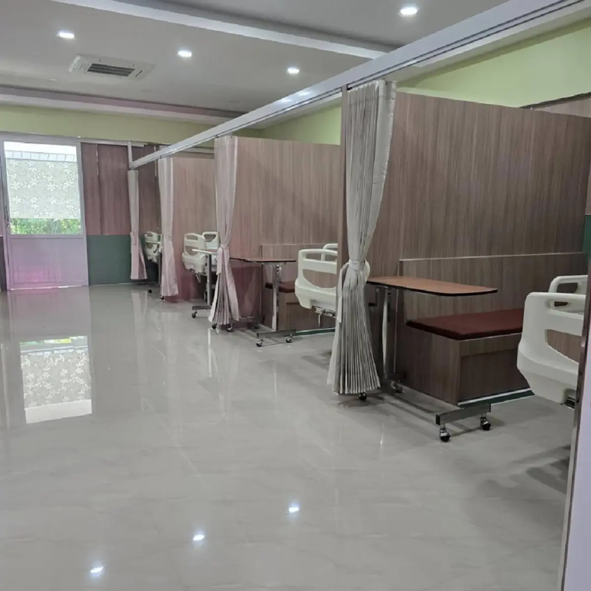 แห่ชื่นชม ตึกผู้ป่วยใน รพ.รัฐ กั้นโซน มีที่นั่งญาติคนไข้ภาพที่เผยแพร่เป็นห้องพักผู้ป่วยในของ โรงพยาบาลด่านมะขามเตี้ย จังหวัดกาญจนบุรี ที่ได้รับการปรับปรุงใหม่ ดูสะอาด โปร่งสบาย มีฉากกั้นเป็นสัดส่วน และยังมีพื้นที่ให้ญาตินั่งพักหรือเฝ้าดูแลผู้ป่วยได้อย่างสะดวก ถือเป็นภาพลักษณ์บริการสาธารณสุขที่หลายคนอยากเห็น