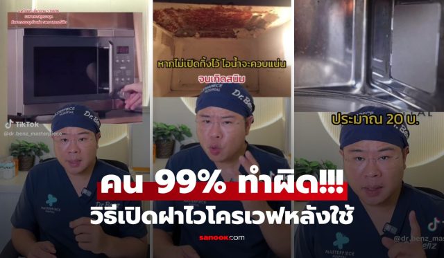หมอเบนซ์เผยว่า กว่า 99% ของคนใช้ไมโครเวฟผิดวิธี โดยมักจะปิดประตูทันทีหลังอุ่นอาหารเสร็จ ซึ่งความจริงแล้ว หลังใช้งานทุกครั้ง ควรเปิดประตูทิ้งไว้ประมาณ 1 ชั่วโมง เพื่อให้ไอน้ำที่สะสมภายในสามารถระบายออกได้