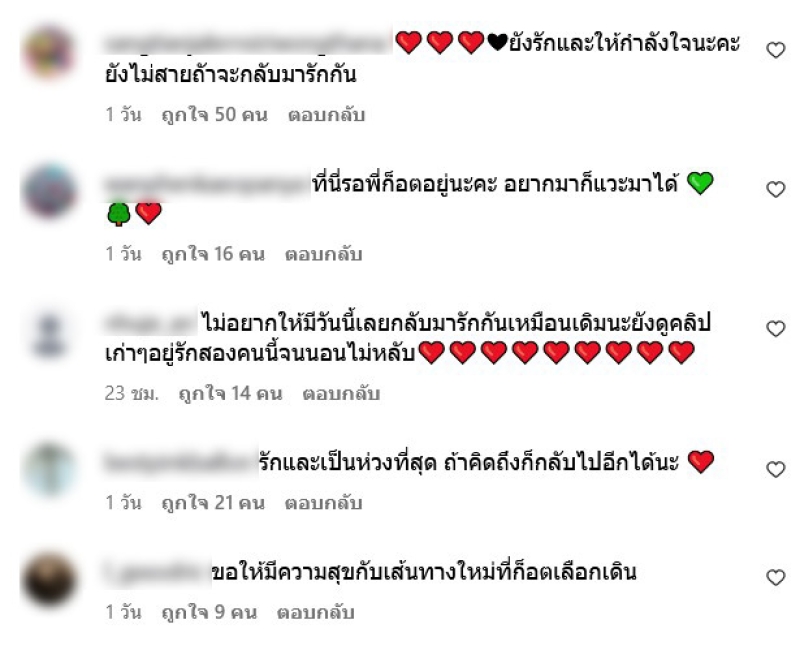 หลังจากที่มีประเด็นมามากมาย ด้านแฟนๆและชาวเน็ต ได้เข้าไปคอมเมนต์อินสตาแกรมของ ก็อต อิทธิพัทธ์ กันจำนวนมาก เช่น ยังรักและให้กำลังใจนะคะ ยังไม่สายถัาจะกลับมารักกัน,ไม่อยากให้มีวันนี้เลยกลับมารักกันเหมือนเดิมนะยังดูคลิปเก่าๆอยู่รักสองคนนี้จนนอนไม่หลับ,ขอให้มีความสุขกับเส้นทางใหม่ที่ก็อตเลือกเดิน,เหนื่อยก็พัก แต่ตอนนี้คนเคียงข้างน้องคนเดิมไม่อยู่ด้วยแล้ว เข้มแข็งและผ่านไปด้วยกัน เป็นต้น