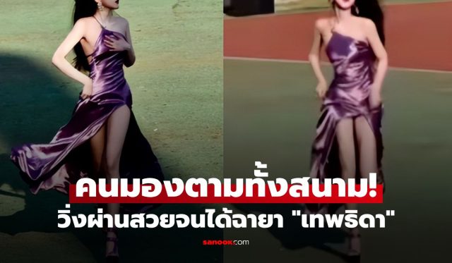 สะกดทุกสายตา! นักศึกษาสาวในชุดเดรสสีม่วงแหวกหลัง วิ่งเข้าสนามกีฬาทำเอาชาวเน็ตจีนหลงใหล ยกให้เป็น “เทพธิดา” จากนิยาย