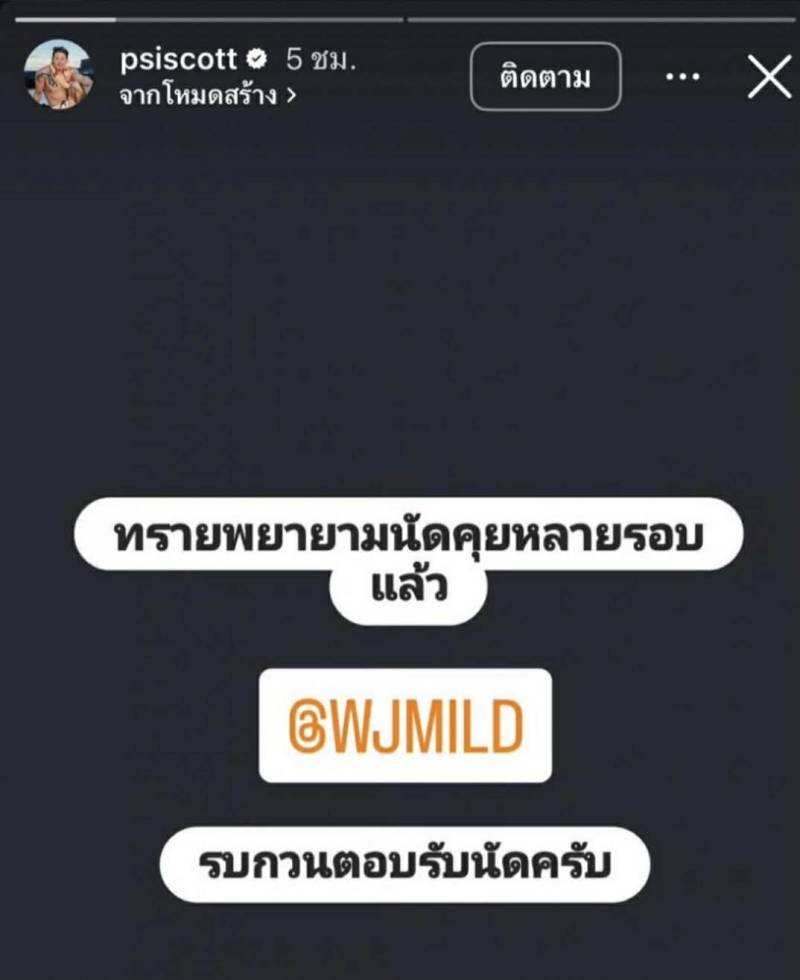 แรงทะลุโซเชียลเลยทีเดียว เมื่อ “ทราย สก๊อต” (psiscott) จู่ ๆ ออกมาโพสต์สตอรี่ไอจีแท็กตรงถึง “มายด์ ลภัสลัล” (@wjmild) ว่าที่เจ้าสาวหมื่นล้าน หลังเข้าพิธีหมั้นกับ “พาย สุนิษฐ์” ไปเพียงไม่กี่วัน