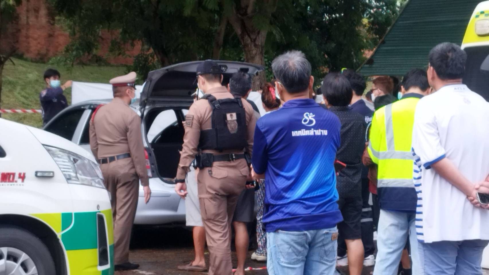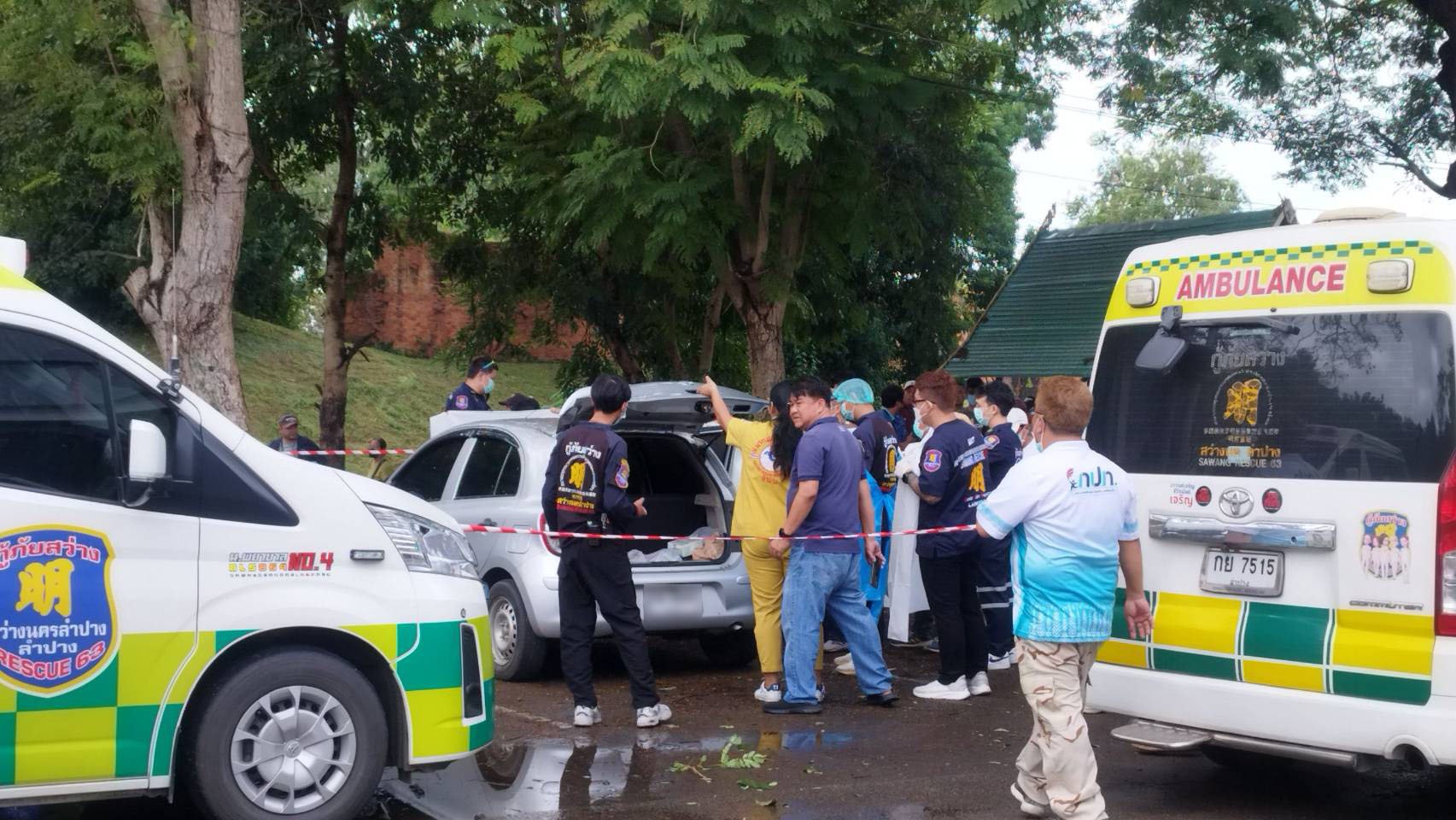 ขณะนี้ตำรวจ สภ.เมืองลำปาง พร้อมแพทย์เวรและเจ้าหน้าที่พิสูจน์หลักฐานอยู่ระหว่างตรวจสอบสภาพศพและพื้นที่โดยรอบ ภายในรถบริเวณเบาะหลังพบเตาวางอยู่และกระทะหมูกระทะใหม่ ๆ เจ้าหน้าที่จะเก็บรายละเอียดทั้งหมดเพื่อนำไปประกอบการสืบสวนหาสาเหตุการเสียชีวิตที่แท้จริง