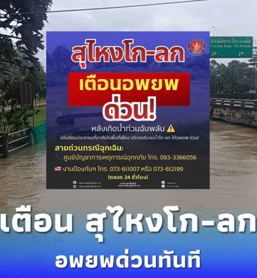 วันที่ 26 พฤศจิกายน 2568 เทศบาลเมืองสุไหงโก-ลก ประกาศแจ้งเตือนประชาชนให้อพยพด่วน หลังเกิดภาวะน้ำท่วมฉับพลันในหลายพื้นที่ โดยเฉพาะบริเวณริมแม่น้ำสุไหงโก-ลก ตั้งศูนย์บัญชาการเหตุการณ์อุทกภัย (War Room) เทศบาลเมืองสุไหงโก-ลก รับมือ 24 ชั่วโมง