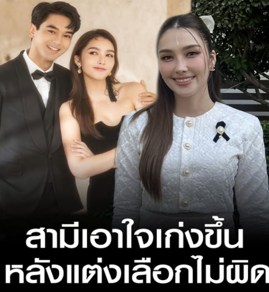 “แฮปปี้มากเลยค่ะ รู้สึกว่าเลือกคนไม่ผิด(ยิ้ม) พี่อ๊อฟสม่ำเสมอ และเป็นหัวหน้าครอบครัวที่ดี เป็นผู้ซัพพอร์ตที่ดีด้วย ทำทุกอย่าง ดูแลเราทุกอย่างเลย เราแทบไม่ต้องทำอะไรเลย ก่อนแต่งหลังแต่งเหมือนเดิม สม่ำเสมอทุกอย่าง แต่เพิ่มขึ้นคือเอาใจเก่งขึ้น(ยิ้ม) เรื่องทะเลาะกันไม่มีเลยค่ะ ตั้งแต่ก่อนแต่งแล้ว”