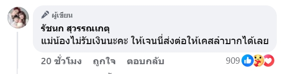 จากนั้น เจนนี่ ยังได้บอกในคอมเมนต์ไว้อีกด้วยว่า “แม่น้องไม่รับเงินนะคะ ให้เจนนี่ส่งต่อให้เคสลำบากได้เลย”