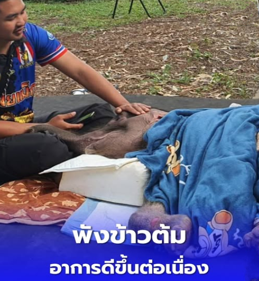 ข่าวดีคือ “ข้าวต้ม” เริ่มมีกำลังมากขึ้น สนใจพี่เลี้ยง และมีการตอบสนองต่อสิ่งแวดล้อมรอบตัวดีขึ้นอย่างชัดเจน ทีมสัตวแพทย์จึงประเมินว่าสัญญาณฟื้นตัวครั้งนี้เป็นไปในทิศทางที่ดี แต่ยังต้องติดตามอาการแบบวันต่อวัน