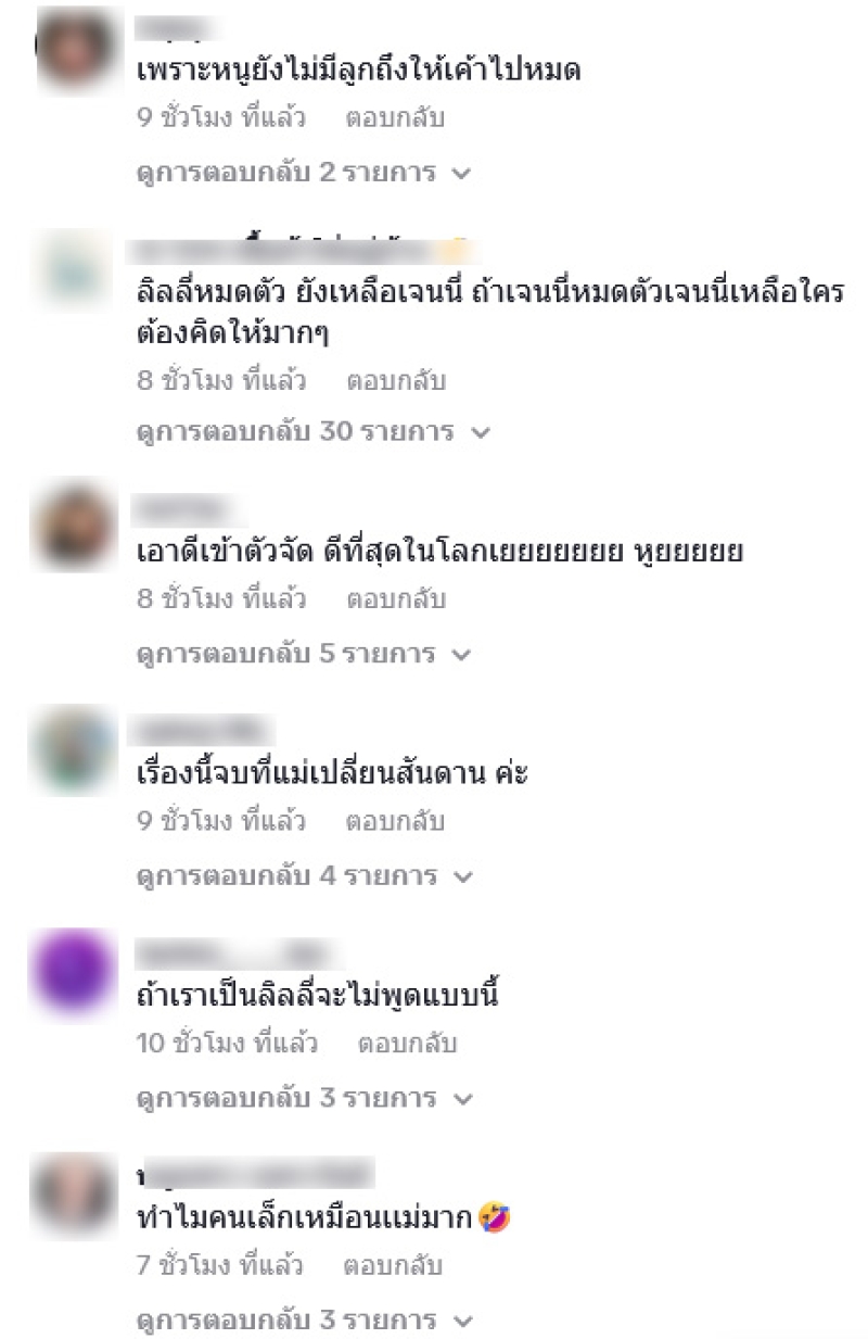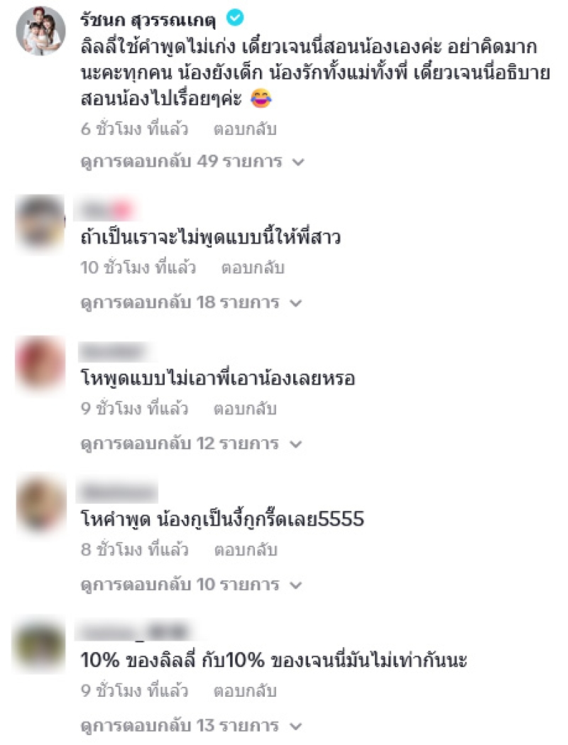 ท่ามกลางคอมเมนต์ต่างเข้ามาคอมเมนต์เรียกทัวร์กันสนั่น อาทิ ถ้าเป็นเราจะไม่พูดแบบนี้ให้พี่สาว,โหพูดแบบไม่เอาพี่เอาน้องเลยหรอ,10% ของลิลลี่ กับ10% ของเจนนี่มันไม่เท่ากันนะ,ลิลลี่หมดตัว ยังเหลือเจนนี่ ถ้าเจนนี่หมดตัวเจนนี่เหลือใครต้องคิดให้มากๆ,ถ้าเราเป็นลิลลี่จะไม่พูดแบบนี้