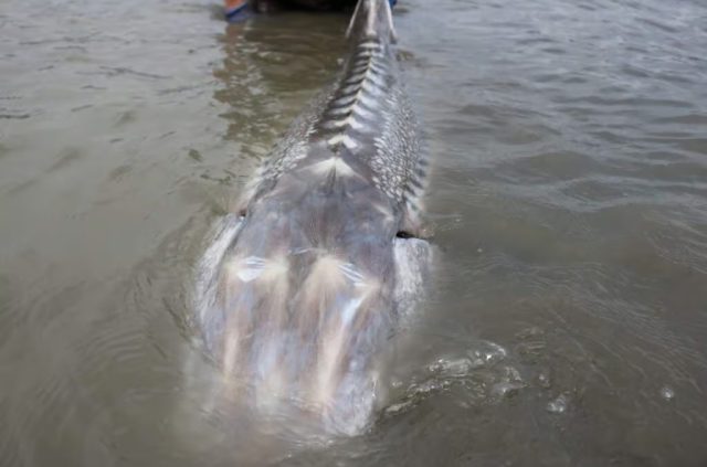เจอตัวเป็นๆ เผยโฉม “ปลาสเตอร์เจียนขาว” ไซส์ยักษ์ 700 กิโลฯ อายุร้อยปี ที่แม่น้ำแคนาดา ใหญ่กว่าเรือ!