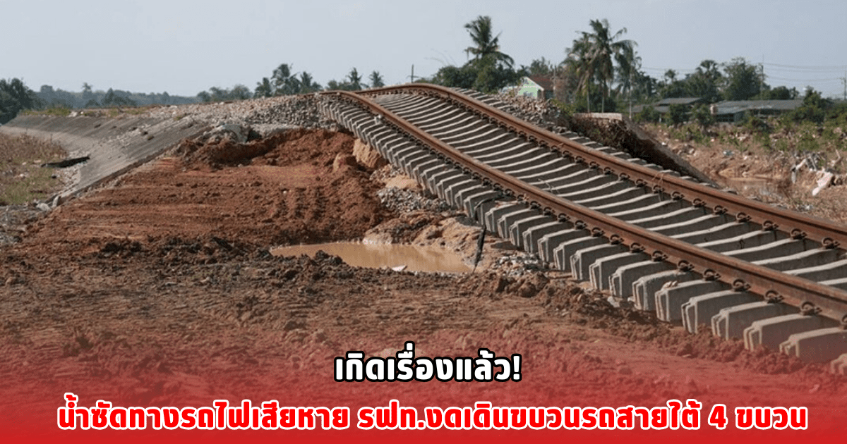 เกิดเรื่องแล้ว! น้ำซัดทางรถไฟเสียหาย รฟท.งดเดินขบวนรถสายใต้ 4 ขบวน