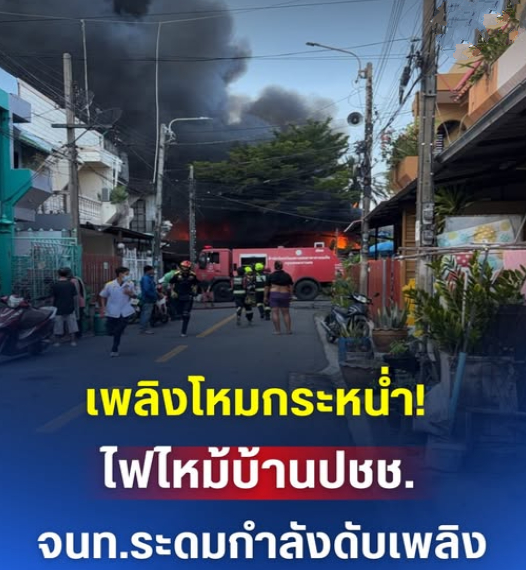 เพลิงโหมกระหน่ำ! ไฟไหม้บ้านปชช. จนท.ระดมกำลังดับเพลิง ช่วยคนป่วยติดเตียงออกนอกพื้นที่
