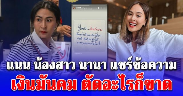 โดยเนื้อหาใจความที่ แนน แชร์นั้น เขียนไว้ว่า รู้ไหมว่า…เงินมันคม ตัดอะไรก็ขาด ตัดเพื่อน ตัดพี่-ตัดน้อง ตัดได้หมดทุกอย่างบนโลกใบนี้