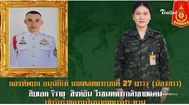 “กองทัพภาคที่ 2 บรรจุ นางสาว พิชญาภา สิงห์อ้น (น้องสาว) ของสิบเอก จิรายุ สิงห์อ้น วีรบุรุษปราสาทตาควายที่เสียชีวิตจากการรบ เพื่อเข้ารับราชการทดแทน”