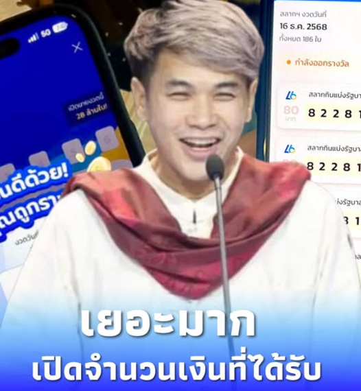 เฮสนั่นเมื่อผลสลากกินแบ่งรัฐบาลงวดวันที่ 16 ธันวาคม 2568 ประกาศออกมาเป็นที่เรียบร้อย ปรากฏว่ามีคนดังในโลกโซเชียลเฮงเต็ม ๆ เมื่อเพจดังสายอาหาร “กับข้าวกับปลาโอ Plaocooking” ออกมาโพสต์ภาพลอตเตอรี่พร้อมข้อความสั้น ๆ แต่ชวนตาลุกวาวว่า“822 มาแล้ว รางวัลที่ 4 27 ใบฮะ”