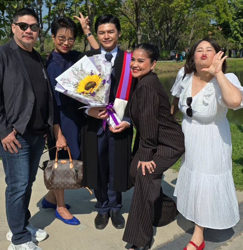 วันที่ 12 มกราคม 2569 ที่ผ่านมา ตั๊ก ศิริพร พร้อมด้วย นุ้ย เชิญยิ้ม สามี และครอบครัว เดินทางไปร่วมแสดงความยินดี ณ สถาบันเทคโนโลยีนานาชาติสิรินธร มหาวิทยาลัยธรรมศาสตร์ ในโอกาสที่ น้องภู ลูกชายคนเก่ง สำเร็จการศึกษาระดับปริญญาตรี สาขาวิศวกรรมดิจิทัล ท่ามกลางบรรยากาศอบอุ่นและเปี่ยมไปด้วยความภาคภูมิใจของคนในครอบครัว