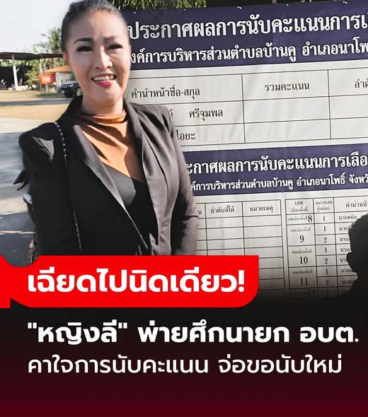 “หญิงลี” คาใจ แพ้เฉียดฉิว 14 คะแนน ศึกเลือกตั้งนายก อบต. จ่อร้องนับคะแนนใหม่