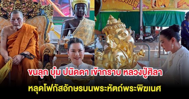 Home ข่าว ข่าวสังคม ขนลุก บุ๋ม ปนัดดา เข้ากราบ หลวงปู่ศิลา หลุดโฟกัสอักษรบนพระหัตถ์พระพิฆเนศ