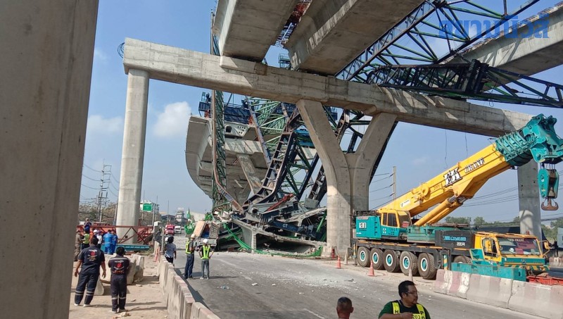 ตอนนี้เจ้าหน้าที่อยู่ระหว่างเร่งดำเนินการ เนื่องจากเหล็กเครนที่พังมีขนาดใหญ่ น้ำหนักเยอะ และยังมีก้อนปูนของสะพานที่พังหล่นลงมาด้วย การจราจรในเส้นทางดังกล่าวเคลื่อนตัวช้า ขอให้ผู้ใช้รถใช้ถนน เดินทางด้วยความระมัดระวัง