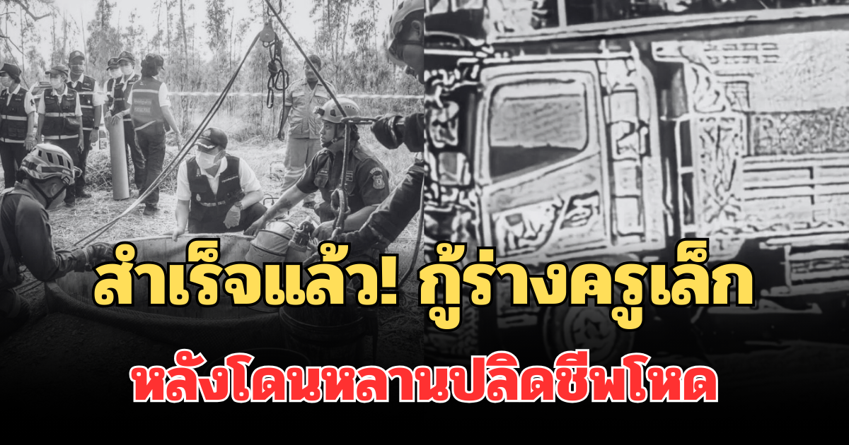 ความคืบหน้าล่าสุด เมื่อเวลา 22.00 น. เจ้าหน้าที่กู้ภัยสามารถนำร่างของครูเล็กขึ้นมาจากบ่อบาดาลได้สำเร็จ ท่ามกลางการอำนวยการของพนักงานสอบสวน สภ.พัฒนานิคม และการตรวจสอบจากเจ้าหน้าที่ตำรวจพิสูจน์หลักฐาน ที่ร่วมชันสูตรพลิกศพในที่เกิดเหตุ ก่อนส่งร่างไปยังสถาบันนิติเวชเพื่อดำเนินการตามขั้นตอนทางกฎหมาย
