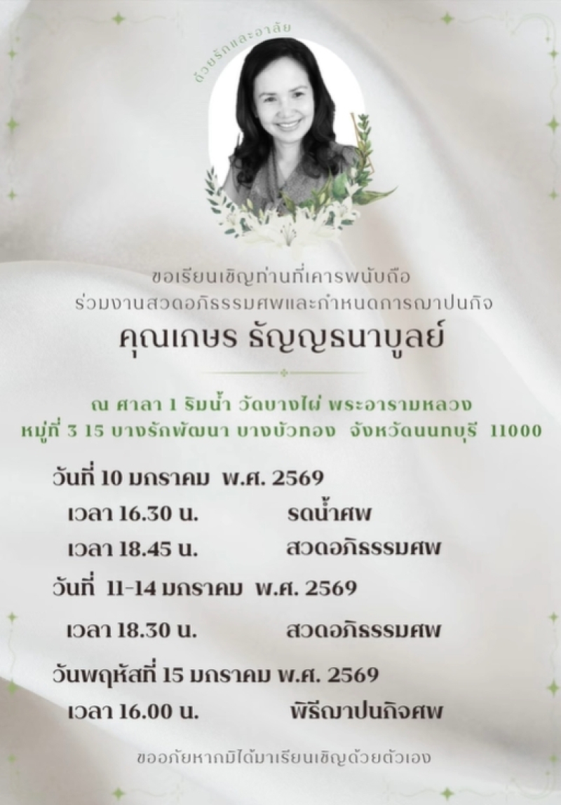 ทางด้าน แม่มาลา ได้เผยภาพบรรยากาศในงานพร้อมระบุข้อความว่า ขอบคุณพี่มดพี่หม่ำ พี่โน๊ต.พี่ต้อย พ่อหนอด.และเพื่อนๆๆทุกคนที่มาในงานของพี่สาวเราและที่ส่งกำลังใจมาให้นะคะขอยคุณจากใจจริงๆๆกราบลาพี่ติ้กเป็นครั้งสุดท้าย