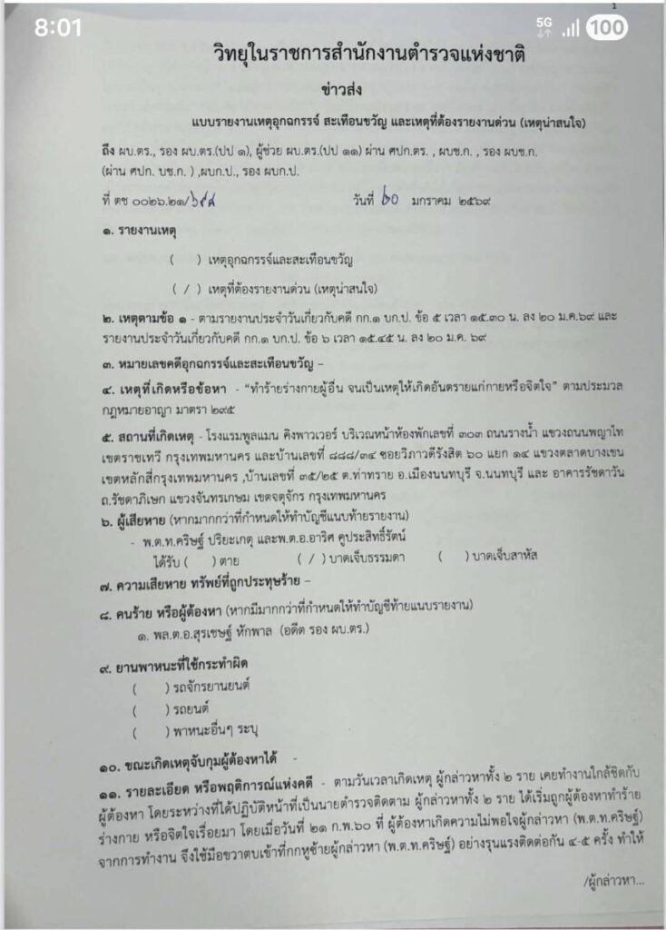 เมื่อวันที่ 21 มกราคม 2569 เจ้าหน้าที่ตำรวจได้ออกหมายจับ พล.ต.อ.สุรเชษฐ์ หักพาล อดีต รอง ผบ.ตร. คดีทำร้ายร่างกาย พ.ต.ท.คริษฐ์ ปริยะเกตุ และพ.ต.อ.อาริศ คูประสิทธิ์รัตน์ ที่โรงแรมพูลแมน คิงพาวเวอร์ โดยมีรายละเอียด ดังนี้