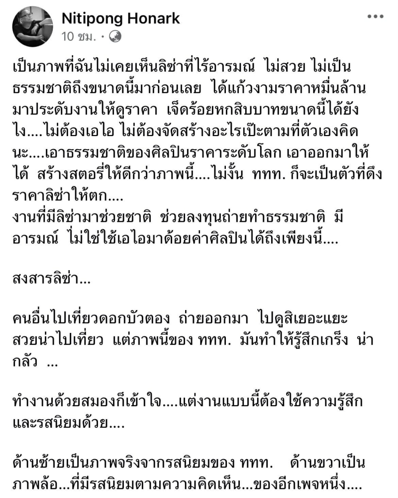 กระแสดังกล่าวยิ่งทวีความร้อนแรง เมื่อ ดี้ นิติพงษ์ ห่อนาค นักแต่งเพลงชื่อดัง ออกมาโพสต์ความเห็นผ่านโซเชียลส่วนตัว วิจารณ์แนวคิด และรสนิยมของงานภาพอย่างตรงไปตรงมา