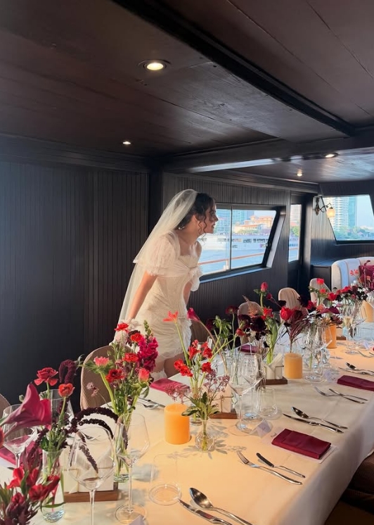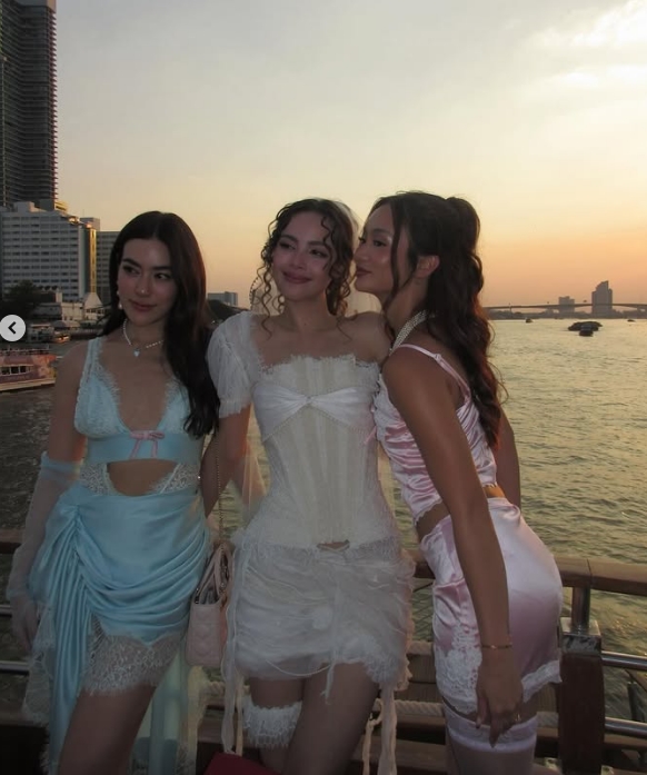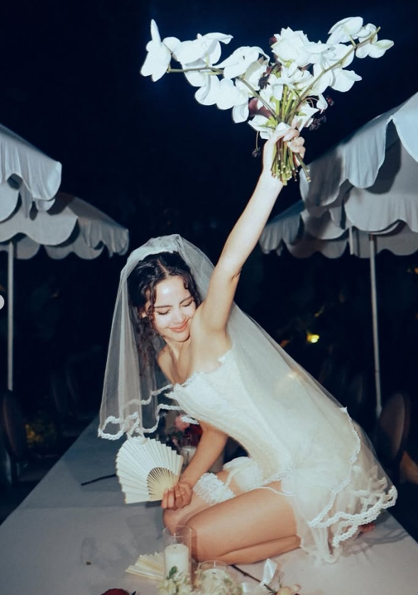 แฟชั่นว่าที่เจ้าสาว: ญาญ่าปรากฏตัวในหลายลุค ตั้งแต่ลุคกลางวันที่ดูสดใสราวกับตุ๊กตา ไปจนถึงลุคกลางคืนสุดเซ็กซี่ในชุดสีขาวเข้าธีมเจ้าสาว