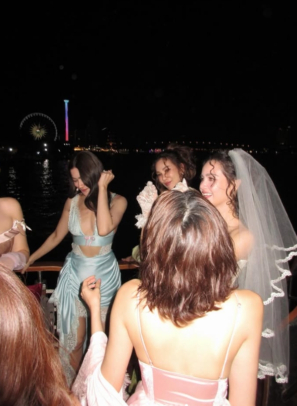 ญาญ่า ได้โพสต์ภาพ พร้อมข้อความอีกครั้งว่า..เซอร์ไพรส์สุดๆ! The sunset สวยมาก soo romantic I think sitting down talking on here was one of the best parts of the night for me All aboard bride squad!!!!