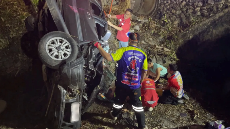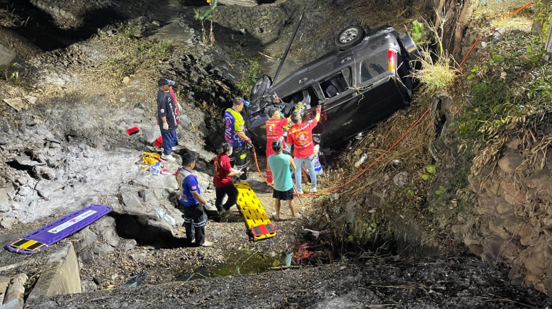 เวลา 04.40 น. วันที่ 29 ม.ค. 69 ศูนย์กู้ชีพขลุงมูลนิธิ รับแจ้งเกิดอุบัติเหตุรถยนต์พุ่งลงข้างทางพลิกคว่ำมีผู้ได้รับบาดเจ็บ ติดภายในจำนวน 4 ราย เจ็บอีก 4 รวม 8 ราย หลังรับแจ้ง พ.ต.ต.มงคล วิงวอน สารวัตรสอบสวน ร้อยเวร สภ.ขลุง กู้ชีพขลุงมูลนิธิ เดินทางตรวจสอบที่เกิดเหตุ เป็นร่องน้ำขนาดใหญ่ข้างจิตราศรม รีสอร์ต ริมถนนสุขุมวิทขาออกไป จ.ตราด พื้นที่หมู่ 9 ต.เกวียนหัก อ.ขลุง จ.จันทบุรี พบรถยนต์ฮอนด้า CRV สีดำ ทะเบียนจันทบุรี สภาพพลิกคว่ำตะแคงอยู่ในร่องขนาดใหญ่ ด้านหน้าพังยับเยิน โชคดีที่เป็นหน้าแล้ง ไม่มีน้ำ