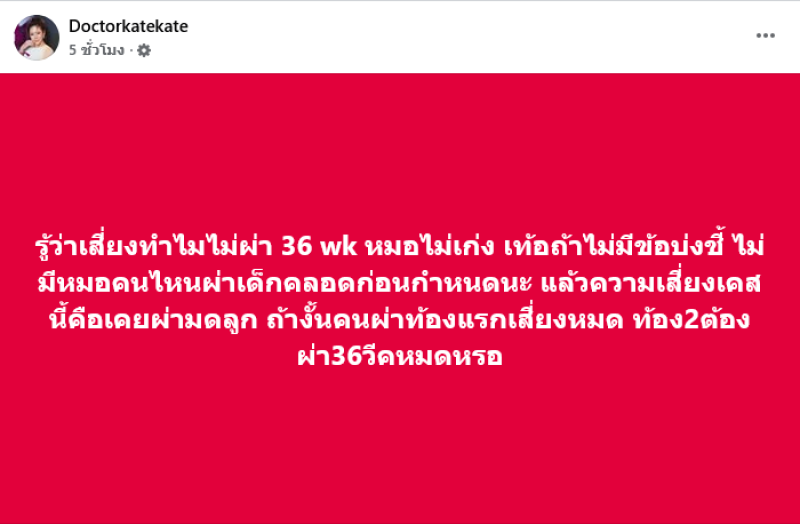 ล่าสุด พญ.ของขวัญ ฟูจิตนิรันดร์ หรือ หมอของขวัญ ได้ออกมาโพสต์ฟาดเดือดถึงชาวเน็ตที่วิพากษ์วิจารณ์ว่า รู้ว่าเสี่ยงทำไมไม่ผ่า 36 wk หมอไม่เก่ง เท้อถ้าไม่มีข้อบ่งชี้ ไม่มีหมอคนไหนผ่าเด็กคลอดก่อนกำหนดนะ แล้วความเสี่ยงเคสนี้คือเคยผ่ามดลูก ถ้างั้นคนผ่าท้องแรกเสี่ยงหมด ท้อง 2 ต้องผ่า 36 วีคหมดหรอ